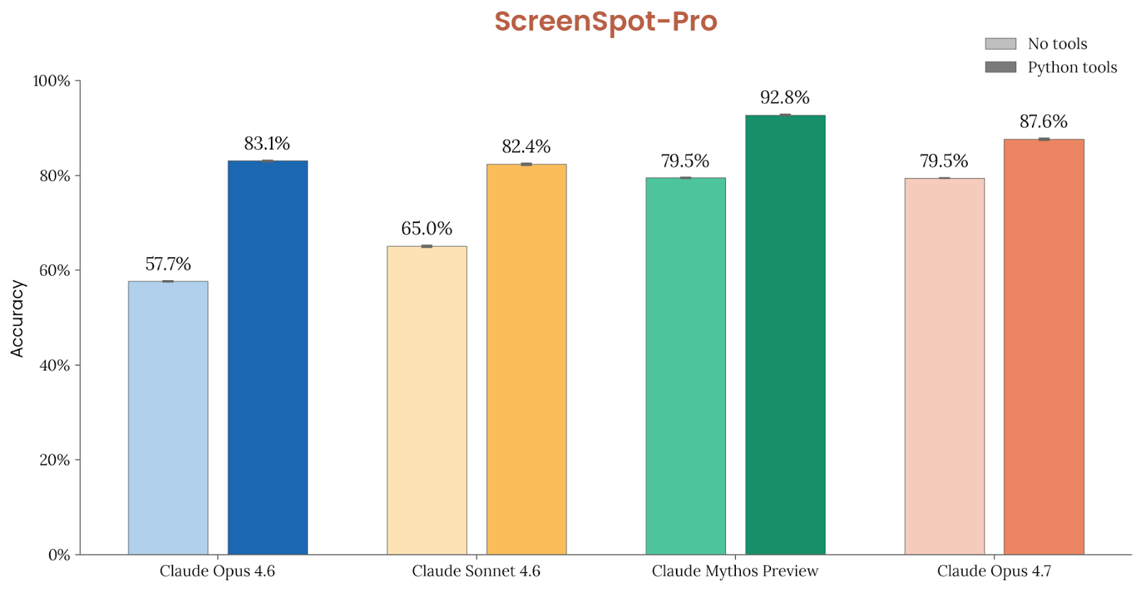 ScreenSpot-Pro 体现的是高分辨率 GUI grounding 能力。Opus 4.7 无工具时得分 79.5%,带 Python 工具时 87.6%;如果把图像下采样到旧上限,分数会掉到 69.0% / 85.9%,说明高分辨率支持对专业应用截图理解非常关键。OSWorld 这类开放式计算机任务上,Opus 4.7 的首尝试成功率为 78.0%,高于 Opus 4.6 在同一新版脚手架下复跑得到的 72.6%。Anthropic 特别说明,新脚手架包含一些稳定性修复和提示微调,如鼓励一次 tool call 批量执行可预测操作、及早承认任务不可行、并在每回合感知剩余步骤预算;但这些改动在旧模型上没有带来显著抬升,因此分数增益大体可归因于模型本身。